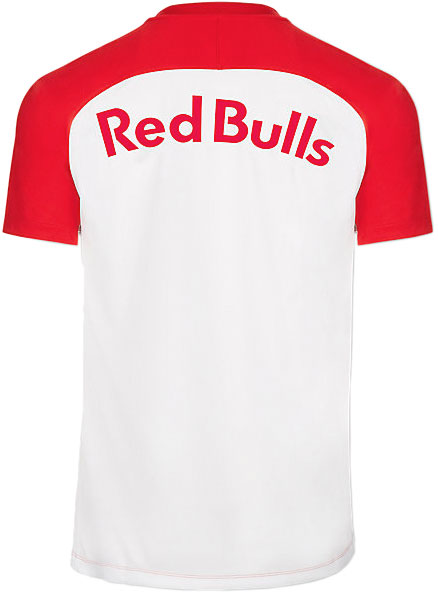 背面はシンプルにレッドとホワイトに分かれる。袖は可動域を確保するラグランスリーブで、肩には“Red Bulls”をプリント。