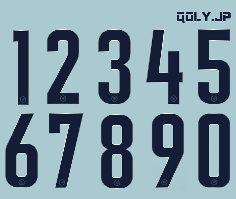 サードキットのカップ戦用背番号は細めのタイポグラフィで、色はネイビーを基調にシルバーの縁取り。番号下にはクラブロゴのグラフィックが入る。