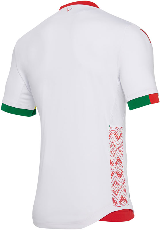 このキットは、UEFAが欧州の小国を支援する「キット・アシスタンス・スキーム」の一環でリリースされたもの。ベラルーシの民族模様を落とし込んだデザインに仕上がっている。