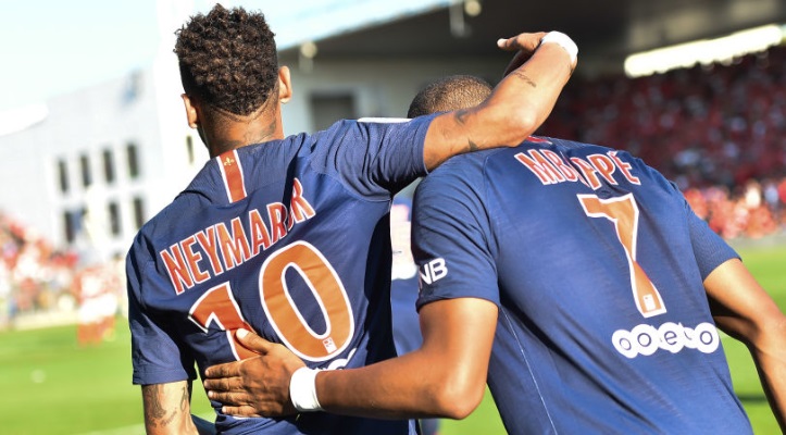PSGでプレーするブラジル代表FWネイマールとフランス代表FWキリアン・エムバペ。