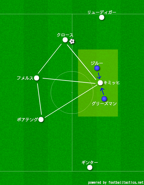 そして、このキミッヒとクロースの位置関係が非常に面白く、レーフが練る新戦術が垣間見えた箇所だ。