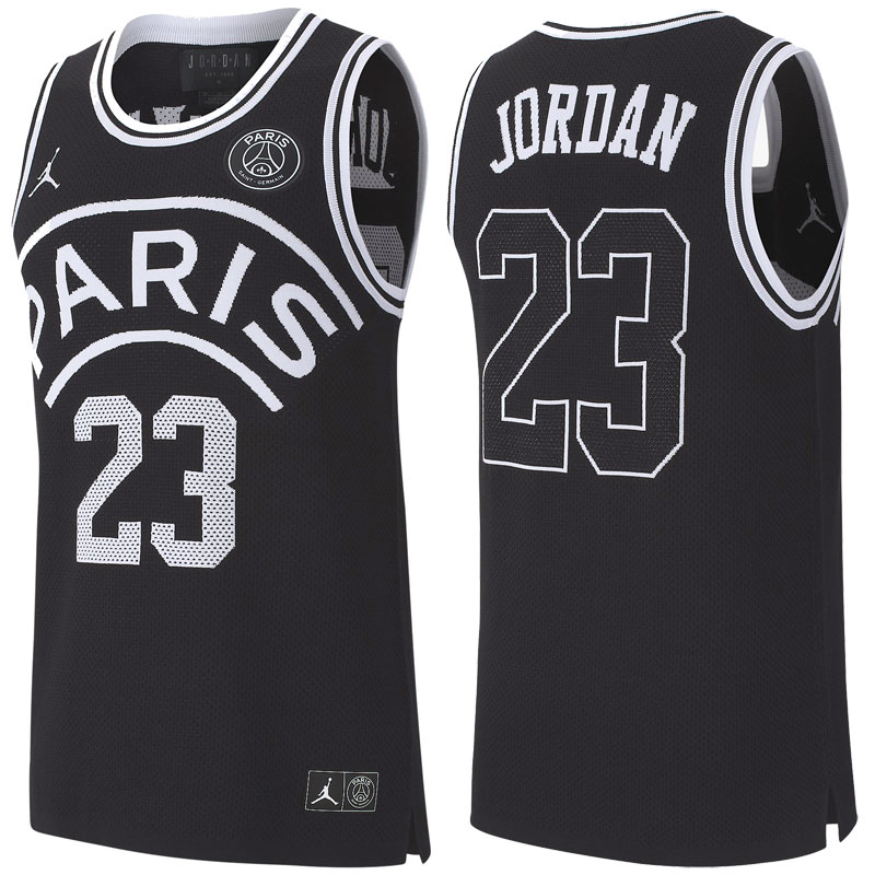 ヨーロッパでは10月発売予定なので、まだ発売前のアイテム。通気性が良く快適さを保つニットのノースリーブジャージ。前面の「PARIS 23」、背面の「JORDAN 23」が抜群の存在感を放つ。