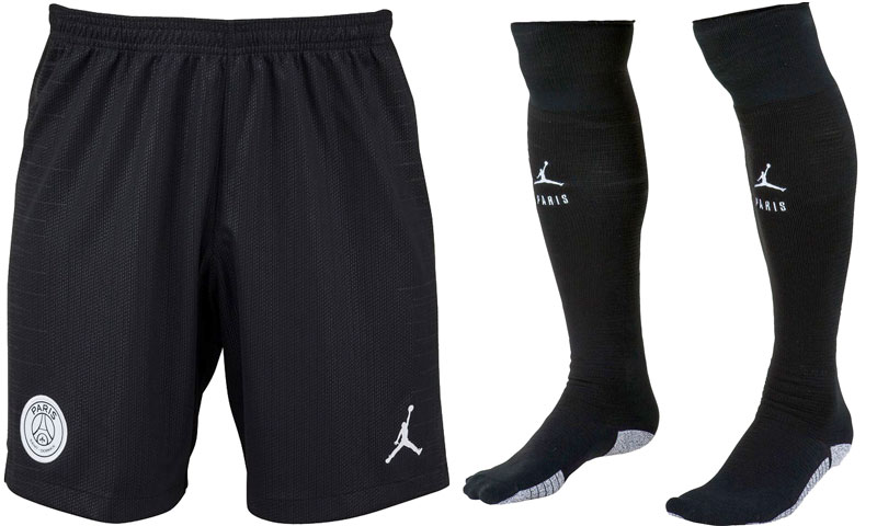 パンツ、ソックスとも色はブラック。パンツは右にPSGのエンブレム、左にジャンプマンを配する。ソックスの前面にはジャンプマンと“PARIS”のグラフィックをあしらう。