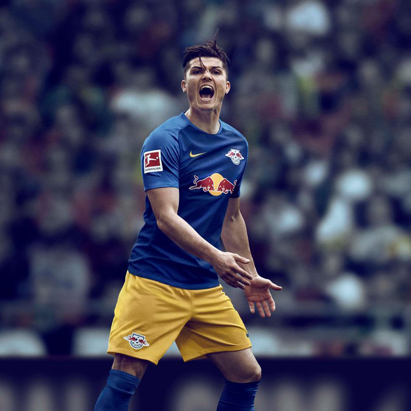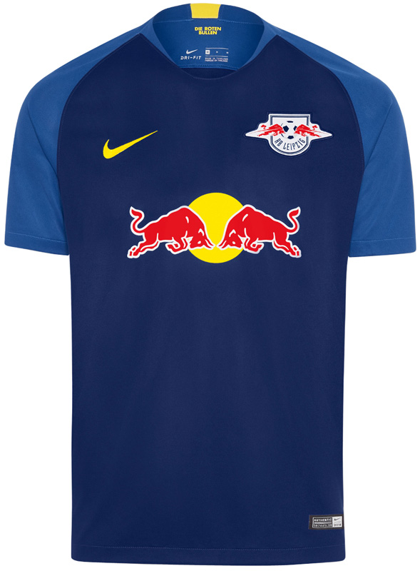昨季に続きブルー系のアウェイキット。中央の“太陽を背に2頭の赤い雄牛が向かい合う”デザインは、レッドブル社のロゴマーク。同社が所有する全てのクラブチームのキットに共通する。