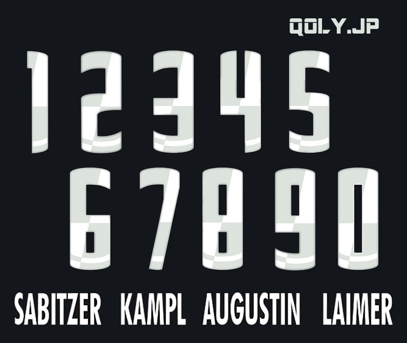 サードキットのネームナンバー。タイポグラフィはホーム・アウェイと同じだが、色がホワイトとライトグレーのため背番号の柄模様がはっきりと見える。