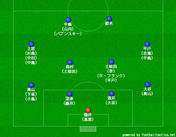 ダブルボランチは万能戦士の土岐田洸平とレフティーの森村昂太で、サイドハーフは右に平戸太貴、左に土居柊太。最前線はオールラウンダーの鈴木孝司と中島裕希が2トップを形成する。