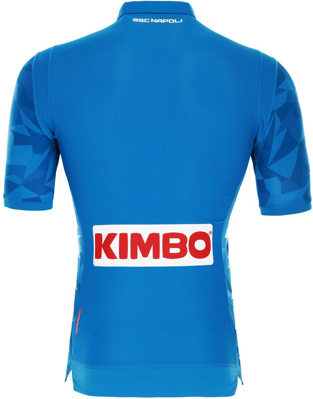 背面は幾何学模様のグラフィックがほとんど無く、シンプルにブルー一色。港湾都市ナポリらしく、海の色がチームカラーとなった。