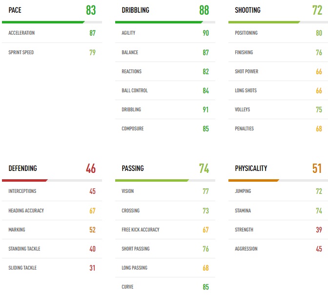 トリッキーな技を多用する非常にテクニカルなウィンガー。対人テクニックがずば抜けて高い。