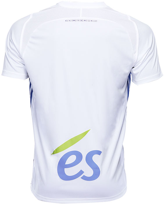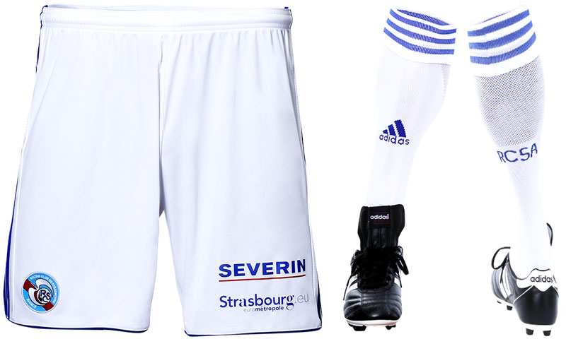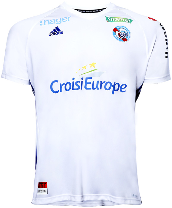 アウェイキットはクラブカラーのホワイト。この色はホームタウンであるストラスブール市の旗や紋章に使われている。シャツの右裾には各キット共通で、ドイツ語のクラブのモットー“JETZT GEHT'S LOS(さあ行くぞ)”のタブが付く。