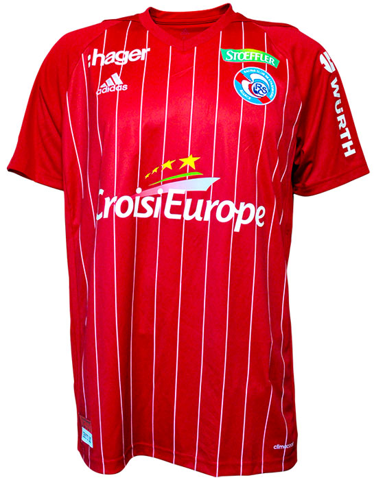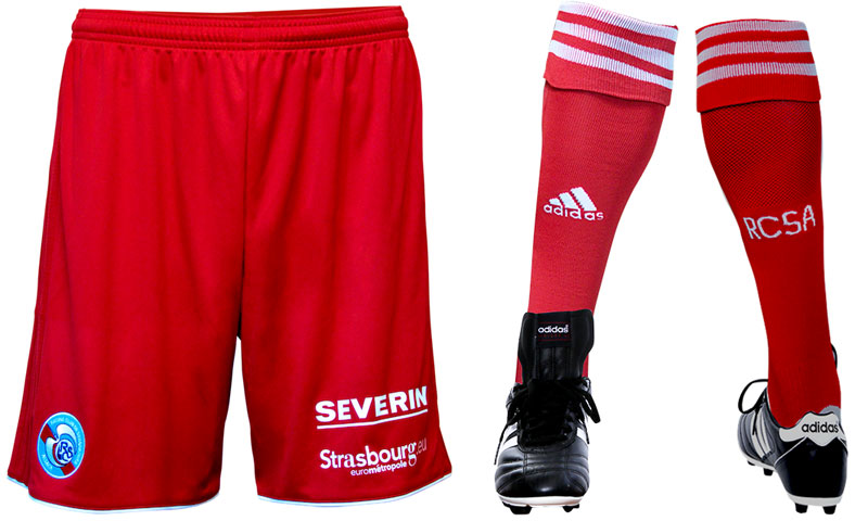 サードはストラスブールのキットに比較的多く使われるレッドを基調に、ちょっと意外なホワイトのピンストライプ。レッドはストラスブール市の旗や紋章の色だが、市が属するアルザス地域圏の伝統的な色でもある。