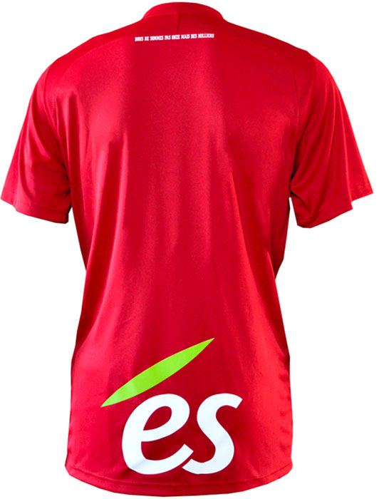 背面の首元にはクラブの応援歌の一節“Nous ne sommes pas onze mais des milliers”をレタリング。