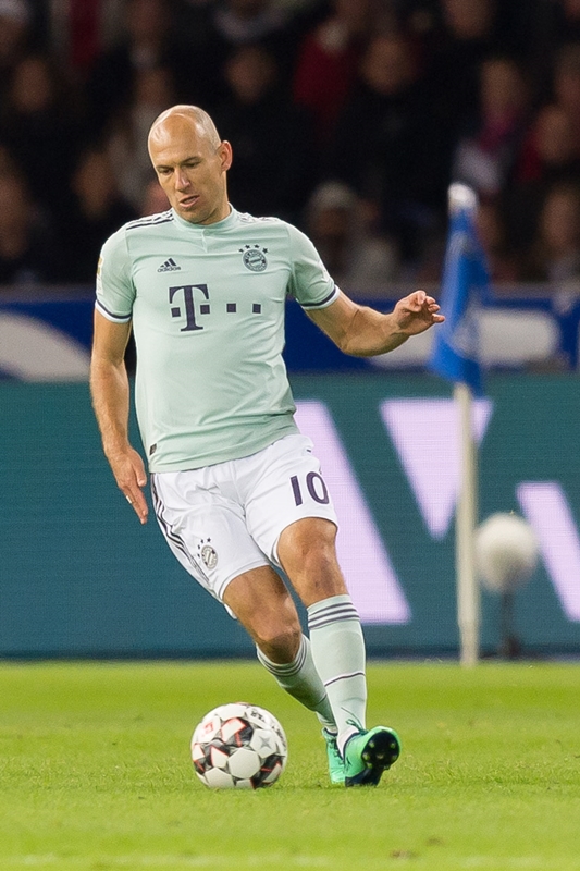 一瞬「おや?」と思わせるアリエン・ロッベン。しかし履いているのは、お気に入りらしい旧モデルの『エックス 17.1』だ。