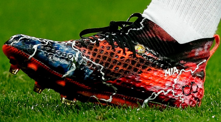 これはPumaのスパイク『Future 2.1 アップライジングパック』にオリジナルのデコレーションを施した特注品。なかなか凝っているので、拡大して見てみよう!