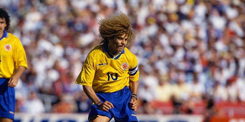 コロンビアの伝説的な司令塔として知られるバルデラマ。その特徴的な金色のアフロヘアーから、日本では「ライオン丸」とも呼ばれた。