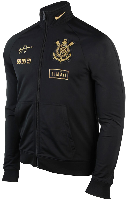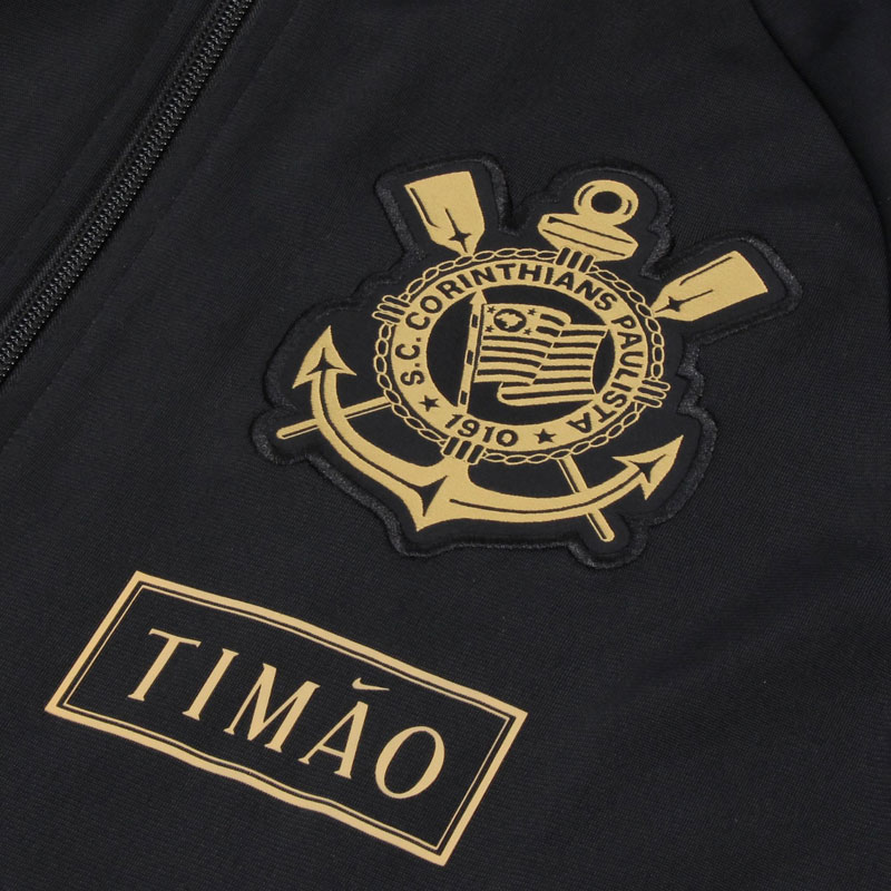 エンブレムはユニフォームと同じくゴールドのモノクロームで、その下にはコリンチャンスの愛称“TIMÃO”をレタリング。「Ã」のティル(˜)がNikeロゴ(スウッシュ)になっている。