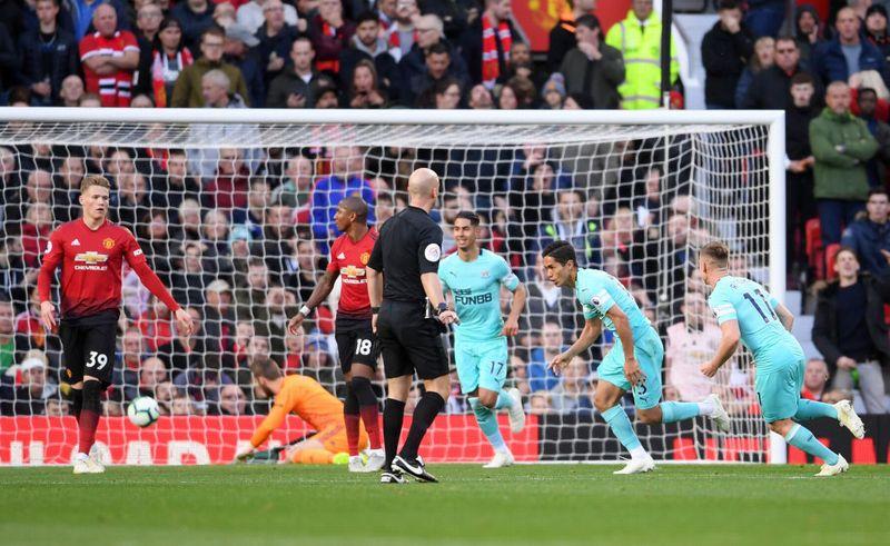 鋭いボールがダビド・デ・ヘアの脇を抜けてネットを揺らし、ニューカッスルが前半のうちに2-0とリードを奪うこととなった。