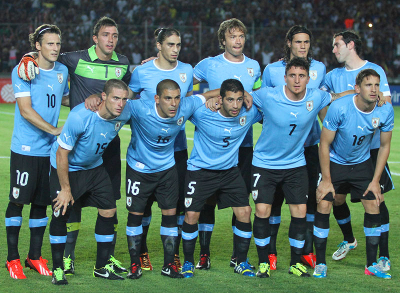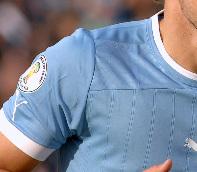 2014W杯南米予選などで着用したホームキット。予選を5位で終えたウルグアイ代表は、ヨルダン代表との大陸間プレーオフを制して出場権を獲得した。