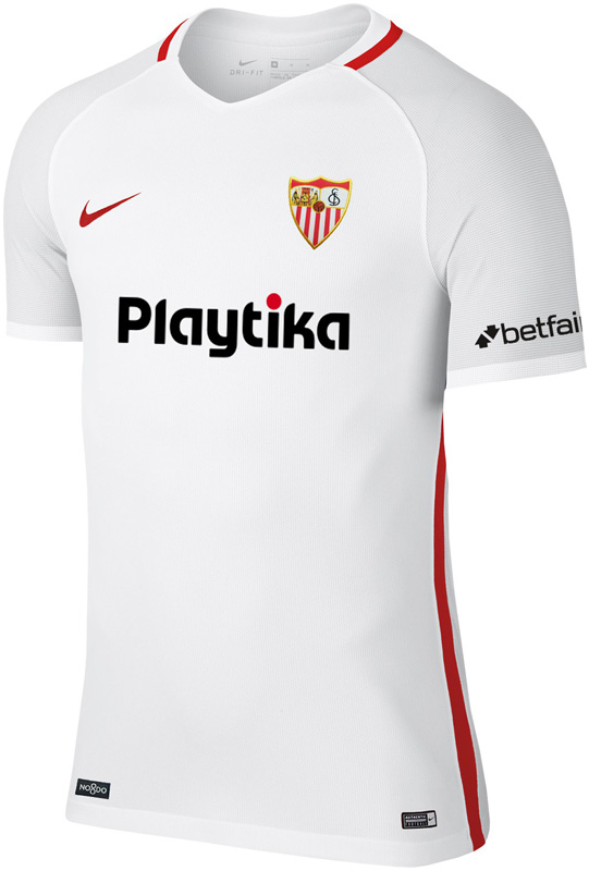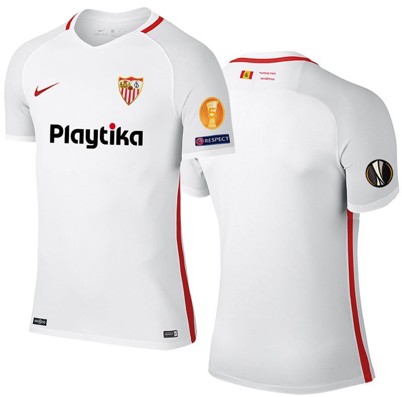 今季はヨーロッパリーグを戦うセビージャ。ELモデルは基本的に同じシャツを使い、両袖に各種パッチを装着する。