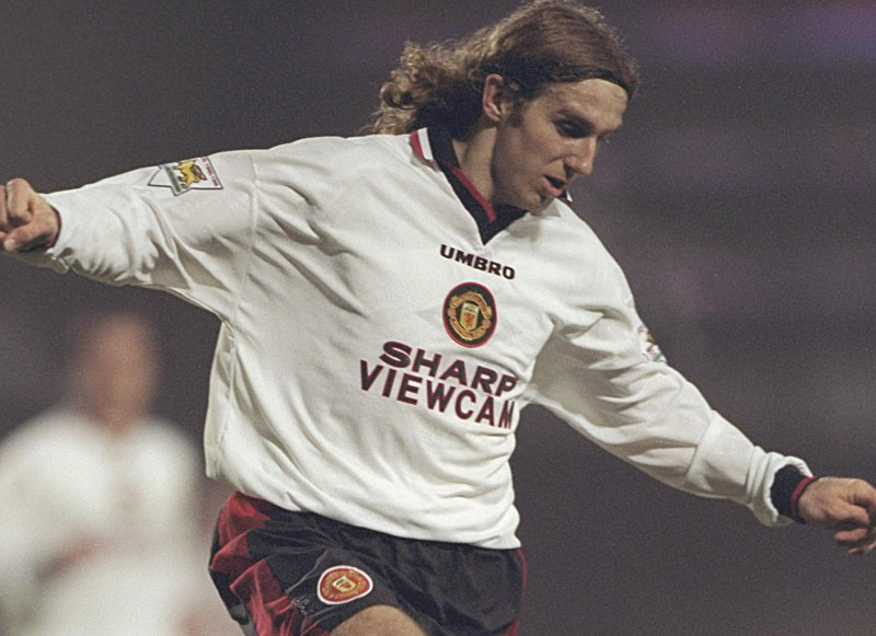 シンプルなデザインと「SHARP VIEWCAM」のスポンサーロゴが人気だった、96-97シーズンのアウェイキット。調べた限りでは公式戦6試合に使われたが、結果は3勝3分で無敗を誇った。
