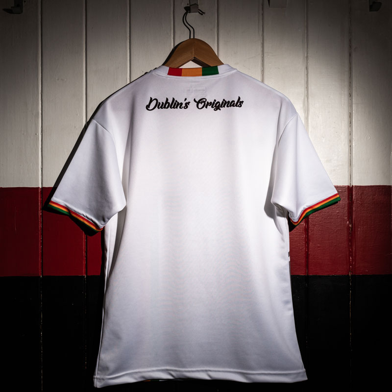 ボヘミアンは今年でクラブ創立128年を迎えた古豪。エンブレムのデザインは街(ダブリン)の紋章がベースとなっている。そのエンブレムを載せるように、左側にはレゲエを象徴するレッド/イエロー/グリーンのラスタカラーのストライプを走らせる。
