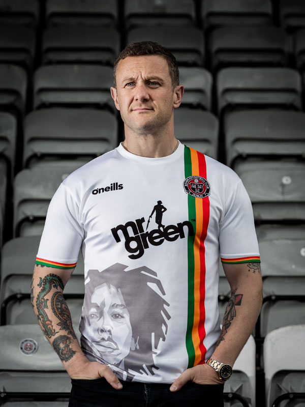 つまりこのキットでは、ホームスタジアムがアイルランドの音楽シーンに大きく貢献してきた歴史を表現し、その象徴としてボブ・マーリーが描かれたというわけだ。