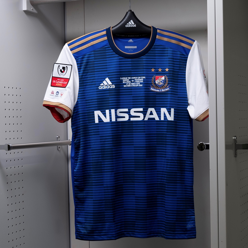 決勝仕様ということで、胸には“J.LEAGUE YBC LEVAIN CUP FINAL SHONAN BELLMARE VS YOKOHAMA F.MARINOS 27 OCTOBER 2018 SAITAMA STADIUM 2002”の文字が入れられている。