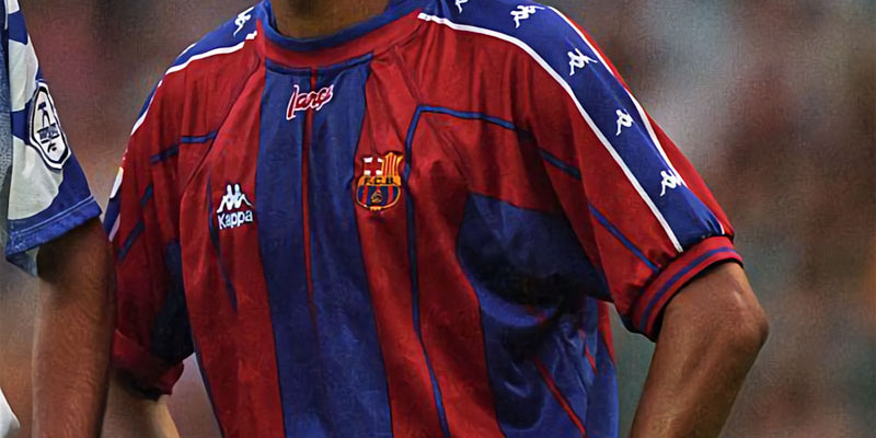 胸元に「Barca」の文字を入れるスタイルは最後まで不変だった。画像では見づらいが、赤い部分にはKappa社のロゴマークを透かしプリントしている。