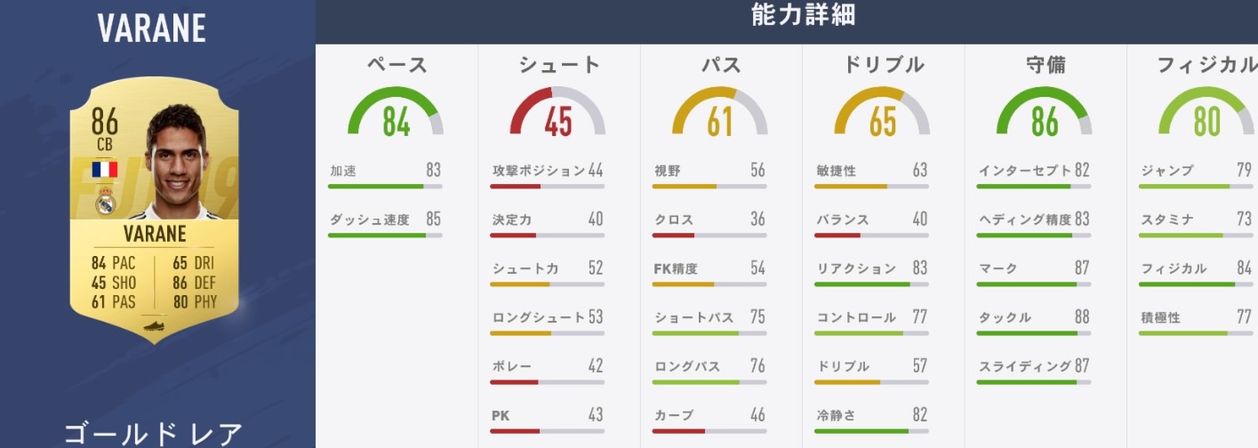 ここでは、『FIFA19』での選手たちの能力設定を見てみる。