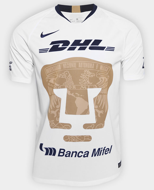 ホームキットは伝統的にホワイトを基調とする。中央のピューマのエンブレムに重ねているのは、クラブの設立母体であるメキシコ国立自治大学(UNAM)の紋章。