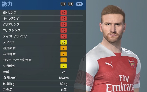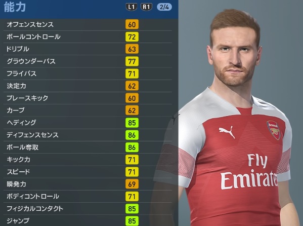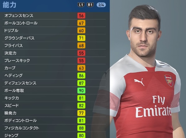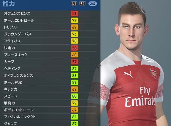 アーセナルの主軸選手、『ウイイレ2019』での能力と顔はこんな感じ