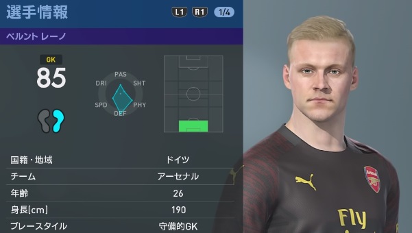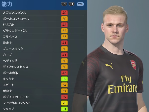 本日対戦するアーセナルとリヴァプール。ここでは、サッカーゲーム最新作『ウイニングイレブン2019』でのアーセナル選手たちの能力設定を見てみよう。