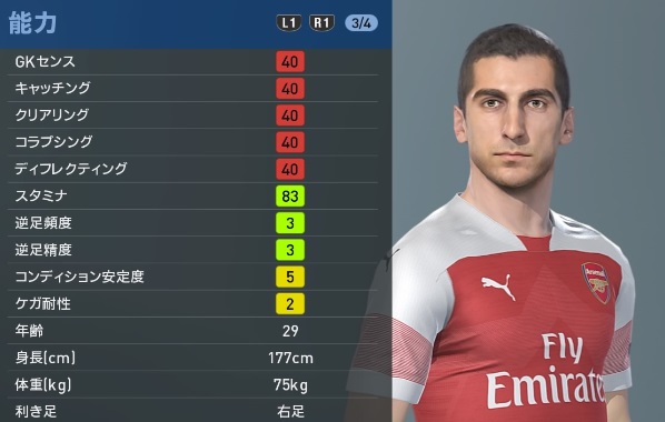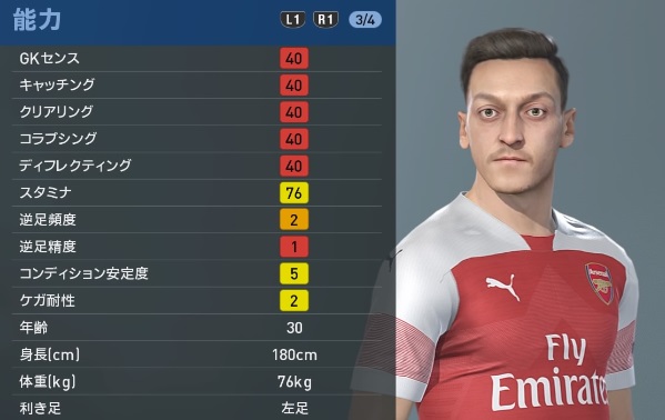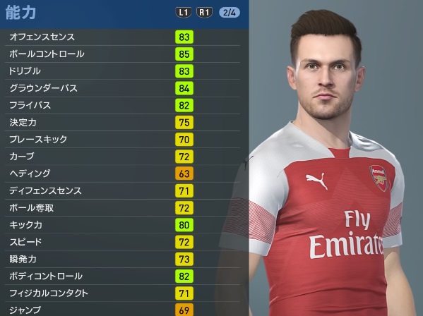 アーセナルの主軸選手、『ウイイレ2019』での能力と顔はこんな感じ