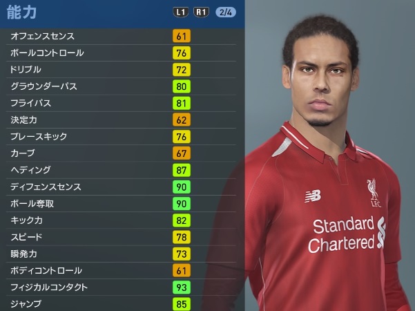 本日対戦するアーセナルとリヴァプール。ここでは、サッカーゲーム最新作『ウイニングイレブン2019』でのリヴァプール選手たちの能力設定を見てみよう。