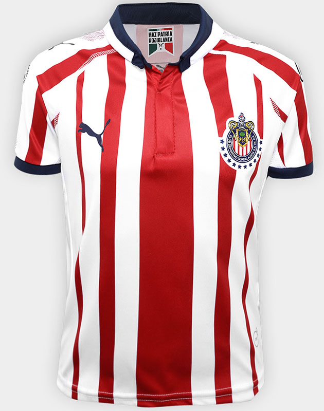 今季のホームキットはお馴染みのレッド/ホワイトのストライプ。この2色は街(グアダラハラ)の色とは無関係。クラブ創設者の出身地であるブルッヘ(ベルギー)の市旗が、チームカラーの由来とされている。