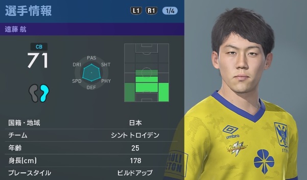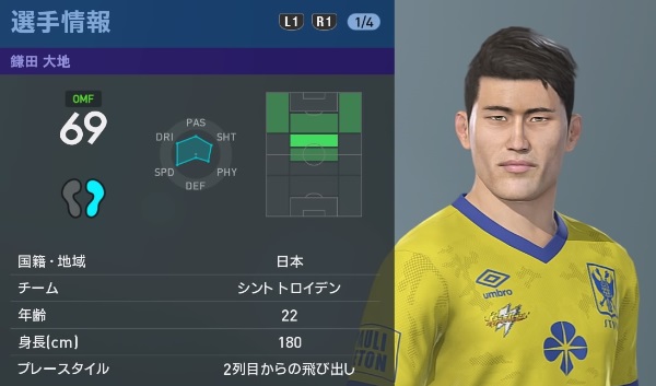 本人はボランチで勝負すると宣言し、ベルギーでも中盤で起用されているが、まだCB登録の模様。フェイスは、お笑いコンビ「ライセンス」の井本貴史さんに似てる?