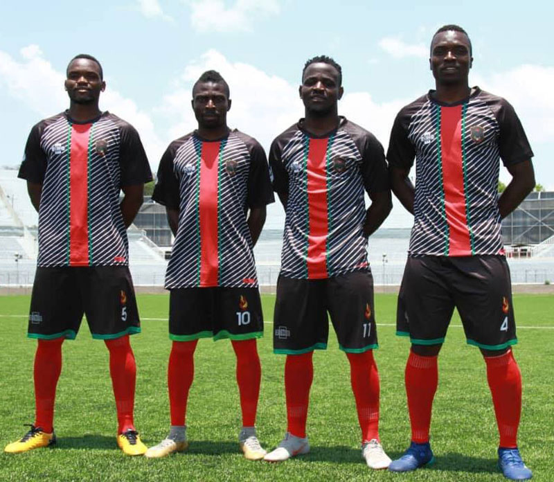 ホーム、アウェイとも基本はレッド/ブラック/グリーンの3色。これはマラウィ国旗の色で、ブラックは“アフリカ人”、レッドは“独立闘争で流れた血”、グリーンは“国土の自然”を意味する。