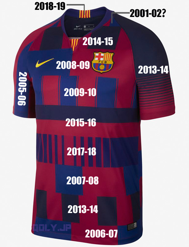 Nikeはデザイン作成にあたり、過去20年間のホームキットを「注意深く配置した」という。そのためか、必ずしも20年分のユニフォームをバランスよく取り入れたわけではないように見える。