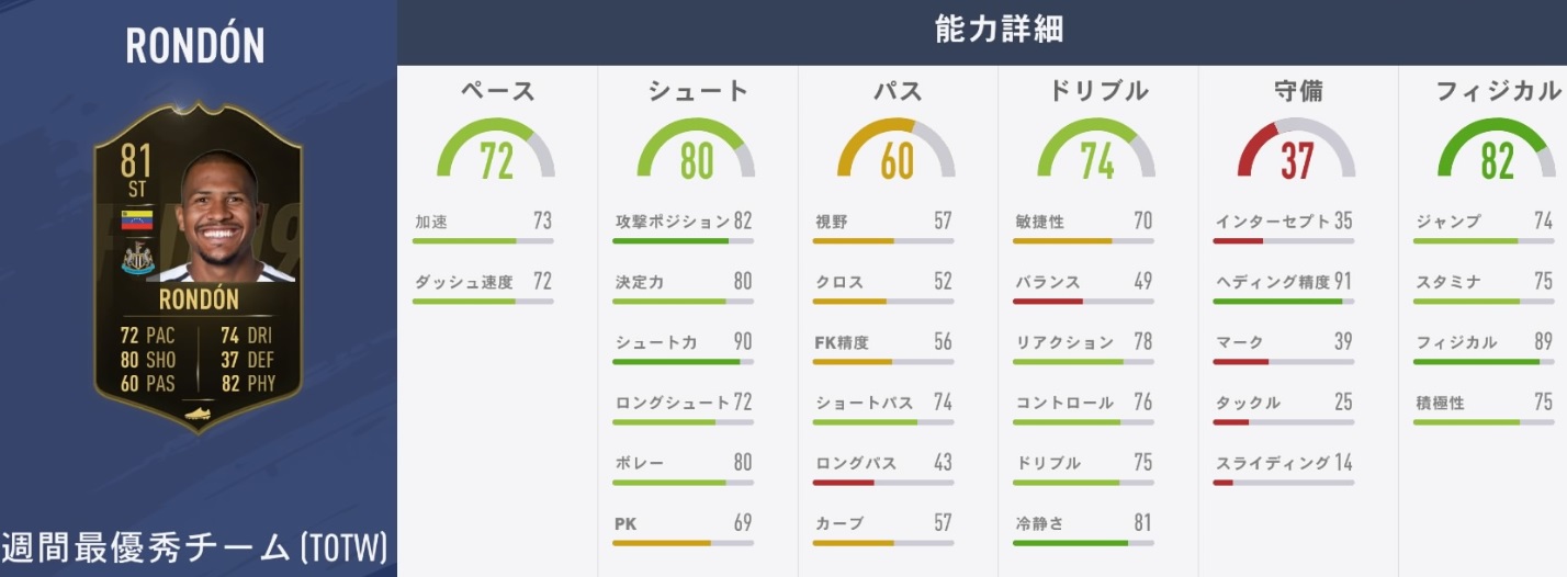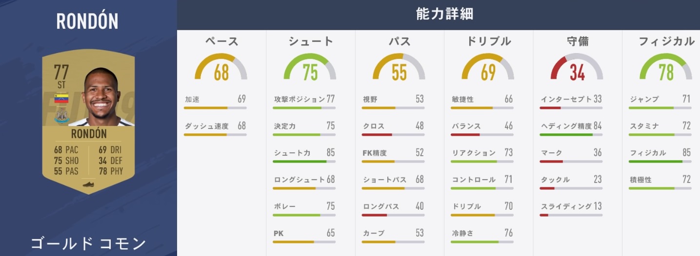 比較としてベネズエラFW陣の能力も見てみよう。