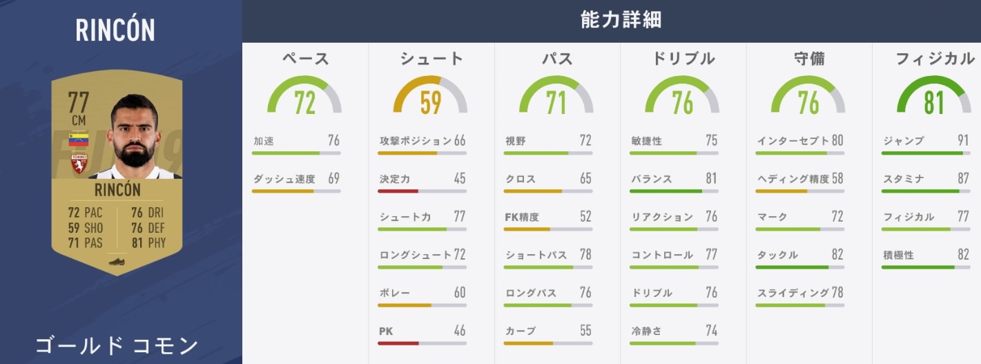 ちなみに、セリエAでも活躍中のボランチであるリンコンはこんな感じ。地味ながらいい選手。