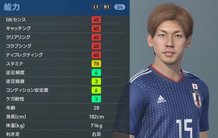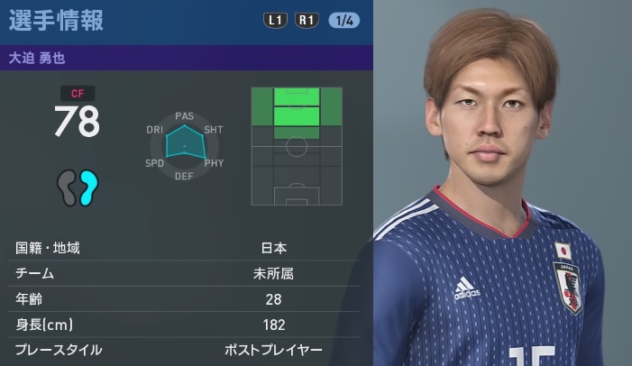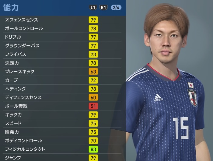 日本代表において唯一無二の存在。ワールドカップでも見せつけたポストワークは絶品だ。ただ、それをゲーム上の能力で表すのは結構むずかしいかも?