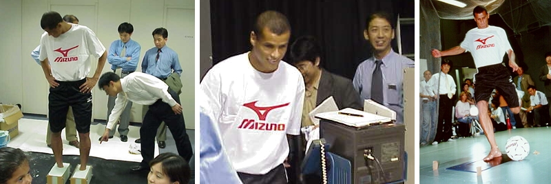 1.リヴァウドの動作(キック、ステップ、ヘディング)を、ミズノ独自のバイオメカニクス手法で「採取」&「解析」。