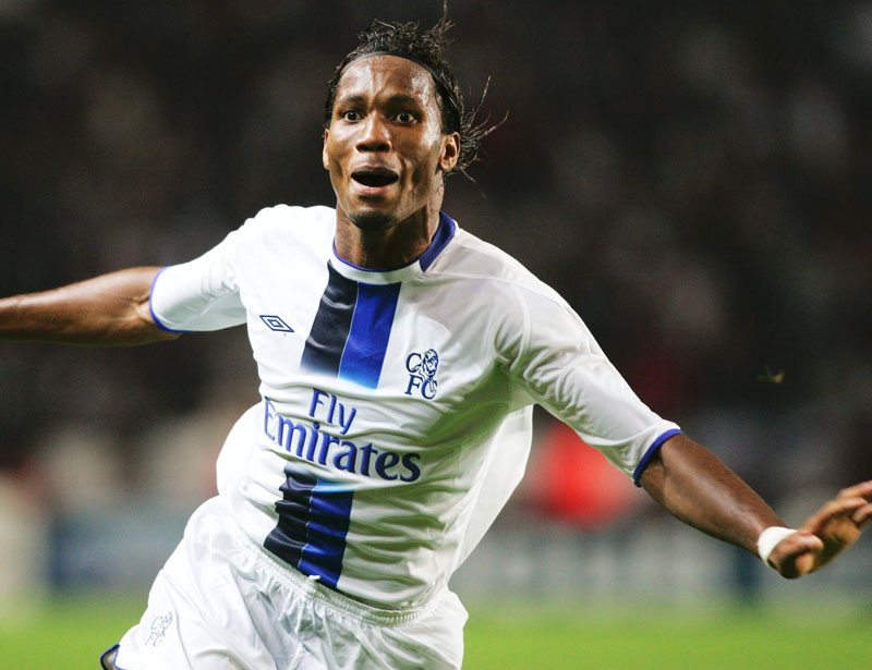 2004年にチェルシーへ加入。中央のストライプが印象的なサードキットを着たドログバは、敵地でチャンピオンズリーグ(CL)初戦のパリSG戦で2得点し勝利に貢献。存在をアピールした。