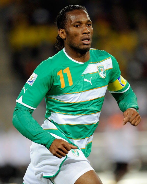 ドログバは大会前の練習試合で日本代表と対戦した際、田中マルクス闘莉王との接触プレーで右腕を骨折してしまう。しかし、本大会には何とギプスを付けて試合に出場。この画像でも右腕は不自然に張っているのが確認できる。