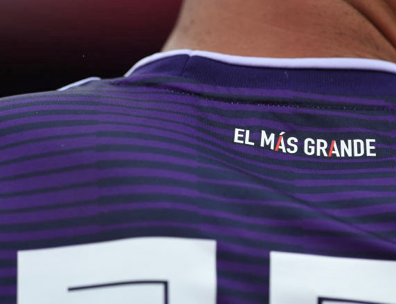 “EL MÁS GRANDE”はホーム・アウェイ共通で、実は“A”の左側だけレッドに色を変えてタスキ掛けを再現している。ちょっとした遊び心だ。