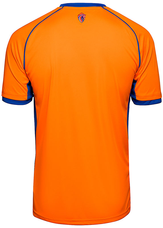 サードキットはオレンジとブルーというコンビネーション。オレンジは2017-18アウェイキットから継続となった。下半分に独特なストライプをあしらう。