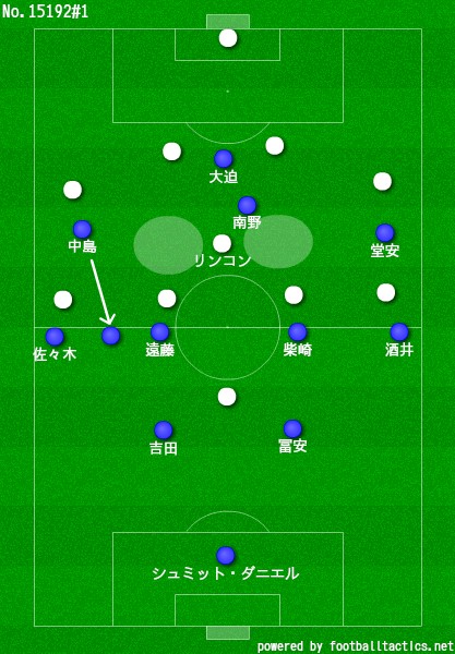 日本の3列目に対してベネズエラは4人がマンツーマン気味に付いて、同数でマークを噛み合わせようとする。ここで登場するのが新10番の中島だ。