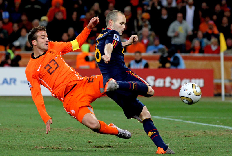 オランダ代表とスペイン代表による決勝戦は、どちらが勝っても初優勝というシチュエーション。結果は延長戦の末に、アンドレス・イニエスタの得点でスペイン代表が初優勝を飾った。その決勝戦でスペイン代表はネイビーのアウェイキットを着ていたが、メダルセレモニーではホームキットに着替えて登場した。