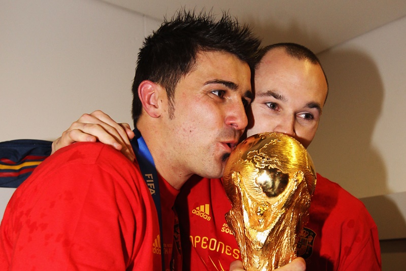 イニエスタもまた、ビジャとともにワールドカップ優勝を経験している。