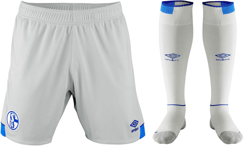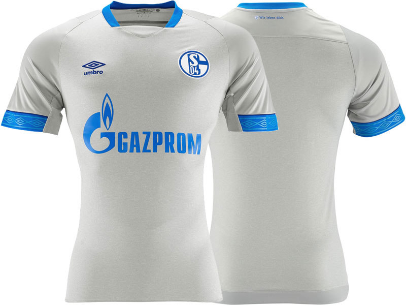 ライトグレーを基調としたNEWアウェイキット。画像では分かりにくいが、ヘザー調(あるいはコットン素材)のような外見で、これまでのシャルケのキットには見られなかったデザイン。