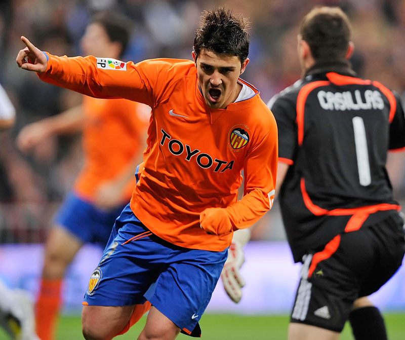 眩いオレンジのアウェイキットもバレンシアらしいカラー。このキットを着てビジャは敵地でのレアル・マドリー戦で2得点し、2-3での勝利の立役者に。